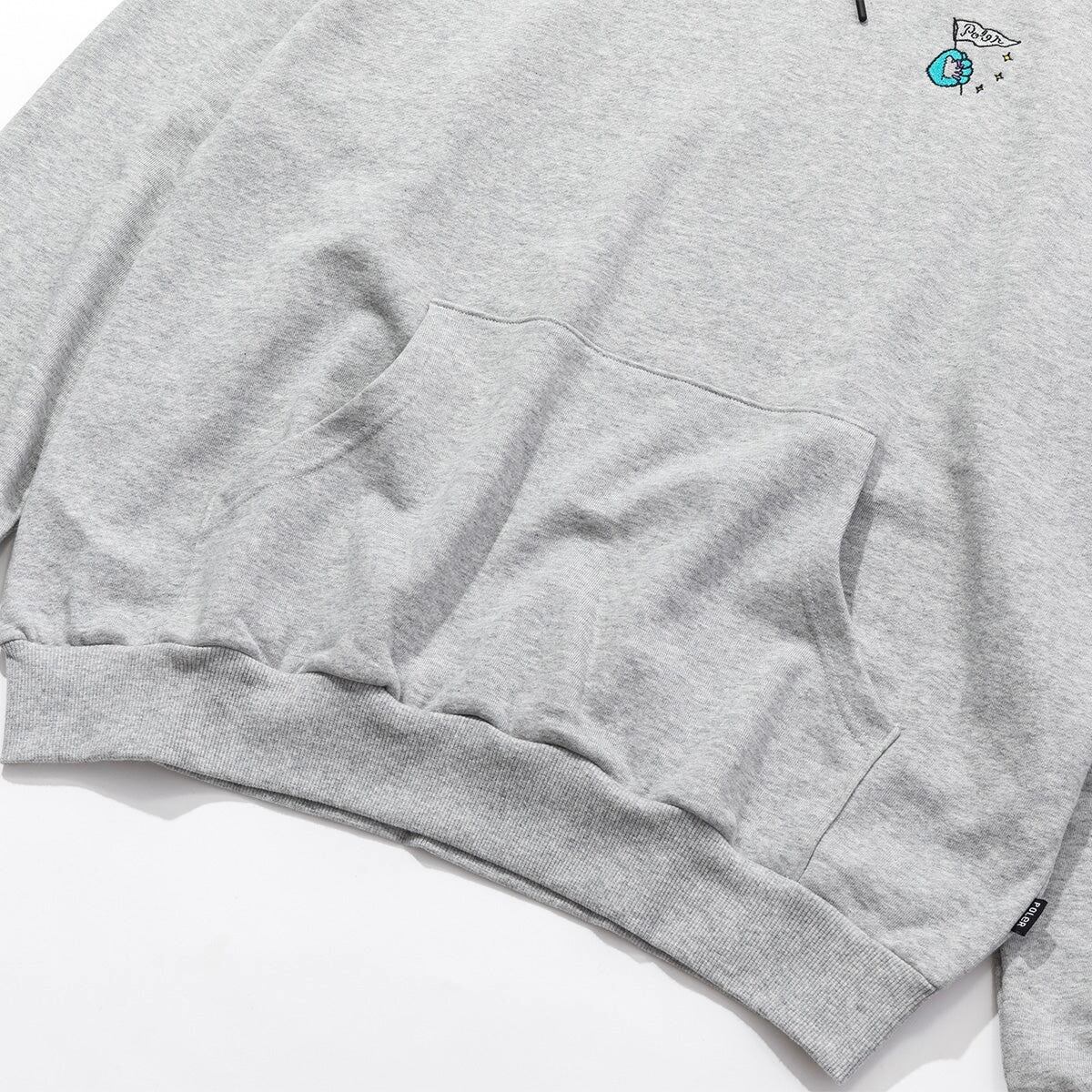 何処かで見たことあるようなコミカルで懐かしみのある怪獣のグラフィックが落とし込まれたスウェットフーディ。フロントにもPOLERの旗を持ったクリーチャーの手が刺繍であしらわれておりインパクト抜群。フレンチテリーボディで着心地も良くPOLERファンならずとも注目。