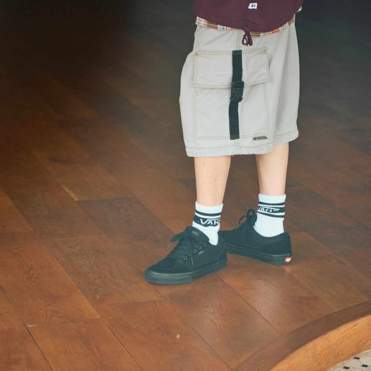 00sのスケートスタイルを彷彿とさせる厚いシュータンや、スエード素材を使用することでボリューミーなシルエットが足元のアクセントに。