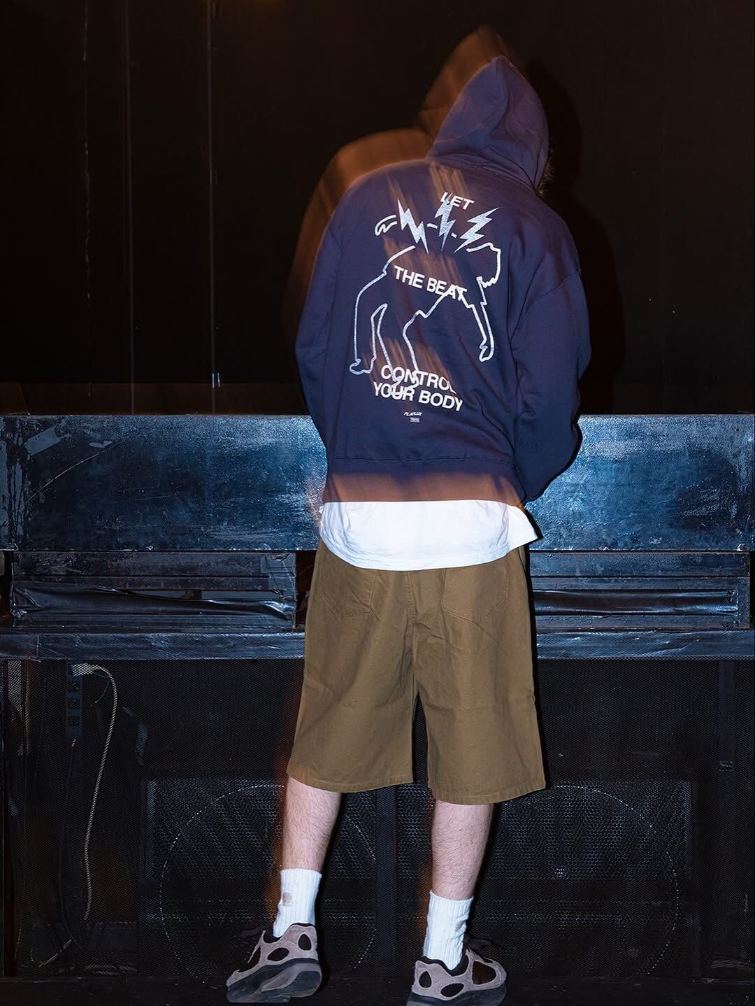 Let The Beat Control Your Body - ビートに身をゆだねろ。というテーマで、レコード屋、DJバー、クラブのスタッフTなど、音楽にゆかりのあるお店とTシャツでコラボさせてもらいました。いつも楽しく遊ばせてもらってありがとうございます。