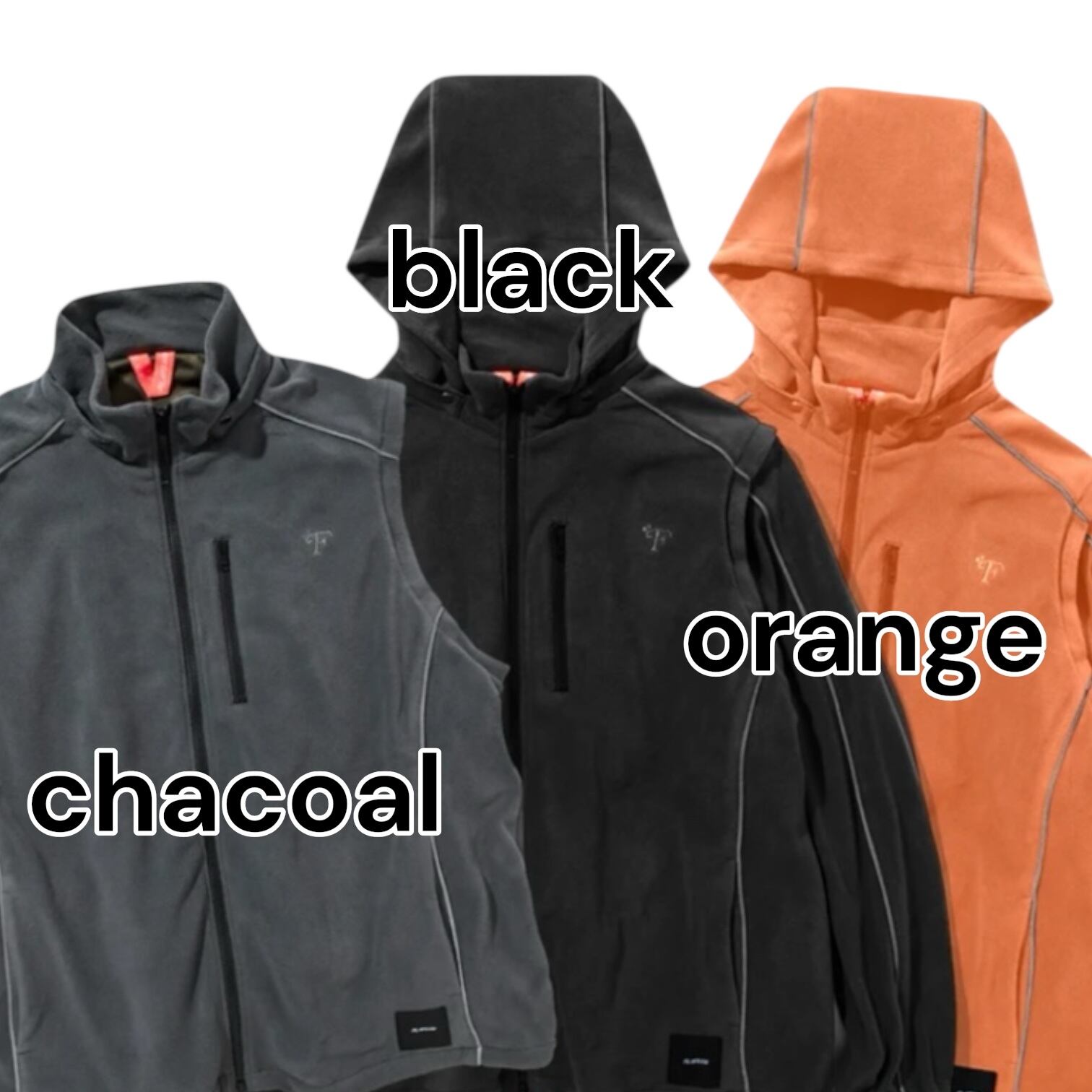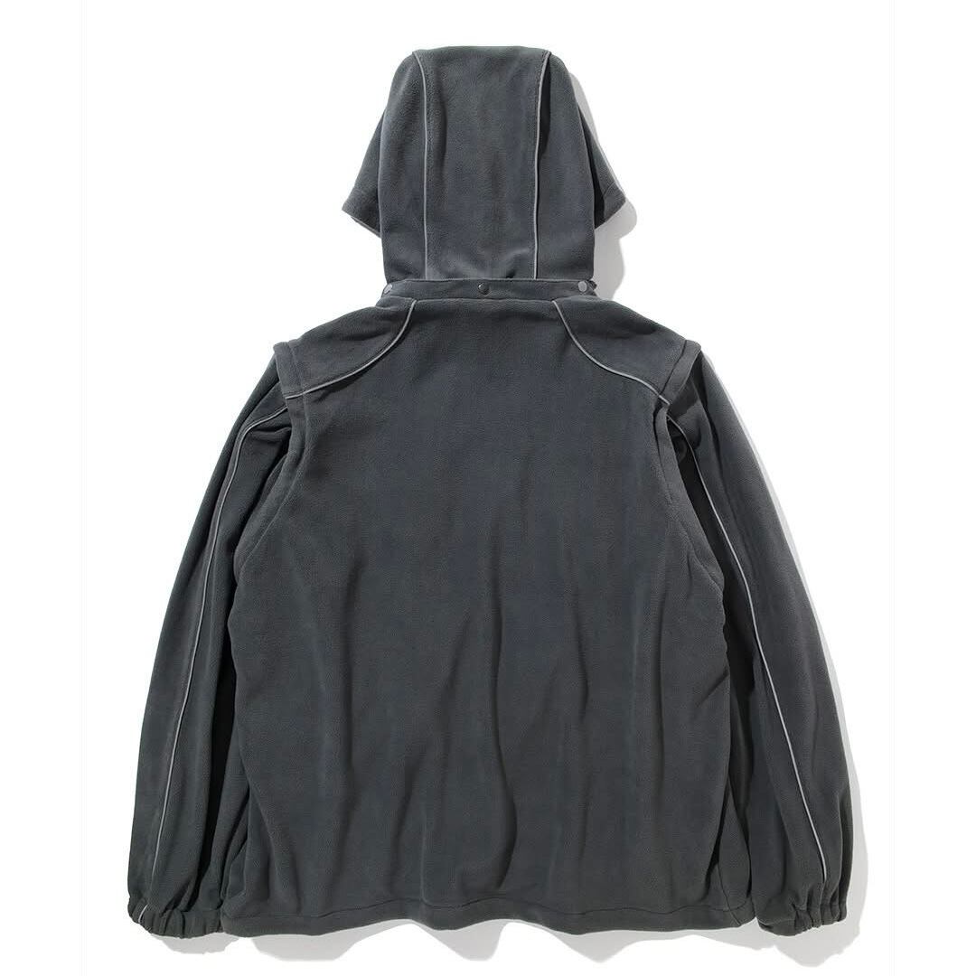 春に出したTrident Jacketがフリース生地になってカムバック。袖とフードが脱着でき、立ち襟のフリースジャケット、フリースベストにもなる。使い勝手最高、アレンジの幅ぶっちぎりの3-wayジャケット。ゆったりしたシルエットと軽い着心地で、ずーーーーーーーーーっと着れます。しっかりした生地感&裏地もついているので、フリース意外と風通す問題も解決。フードから走るリフレクターパイピングは袖に流れ、胸から走って同生地のPoseidon Pantに繋がります。charcoalとblackはセットアップで着用可能、夜道も安心どころかめちゃ目立ちます。