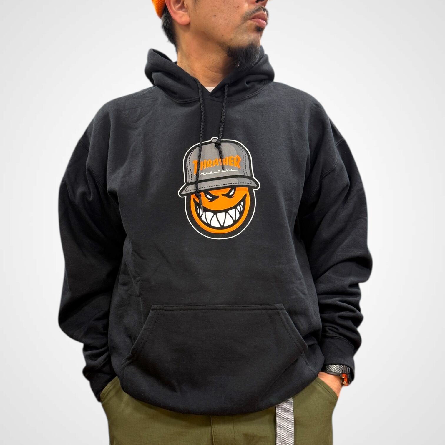 しっかりとした生地感で着心地も良く、ストリート・スケータースタイルの主役として活躍する一着。THRASHER、SPITFIRE好きには特におすすめです。