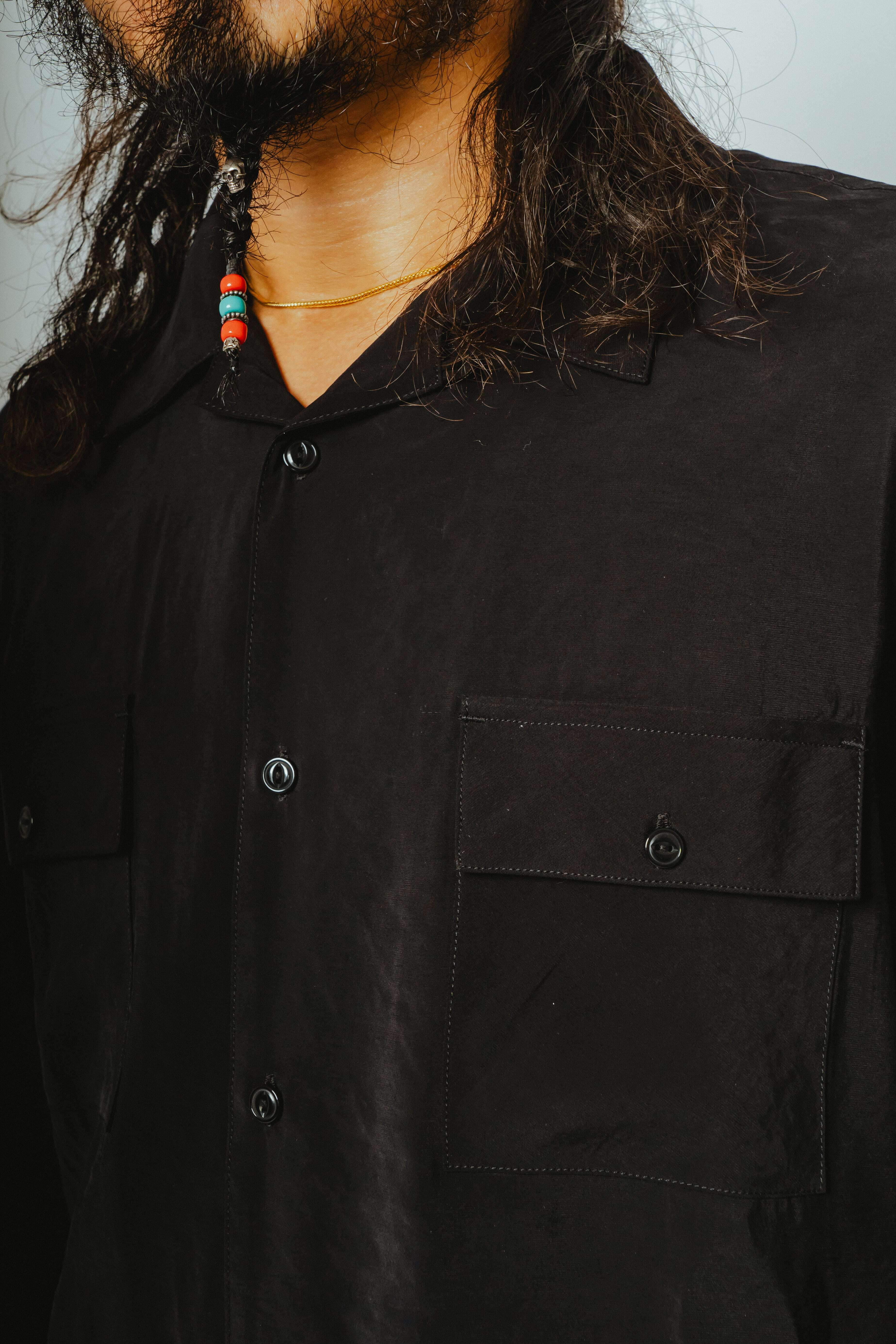 BIG MIKE Rayon Mix Open Slit L/S Shirts [BLACK] 1026 15250 ビッグマイク オープンシャツ