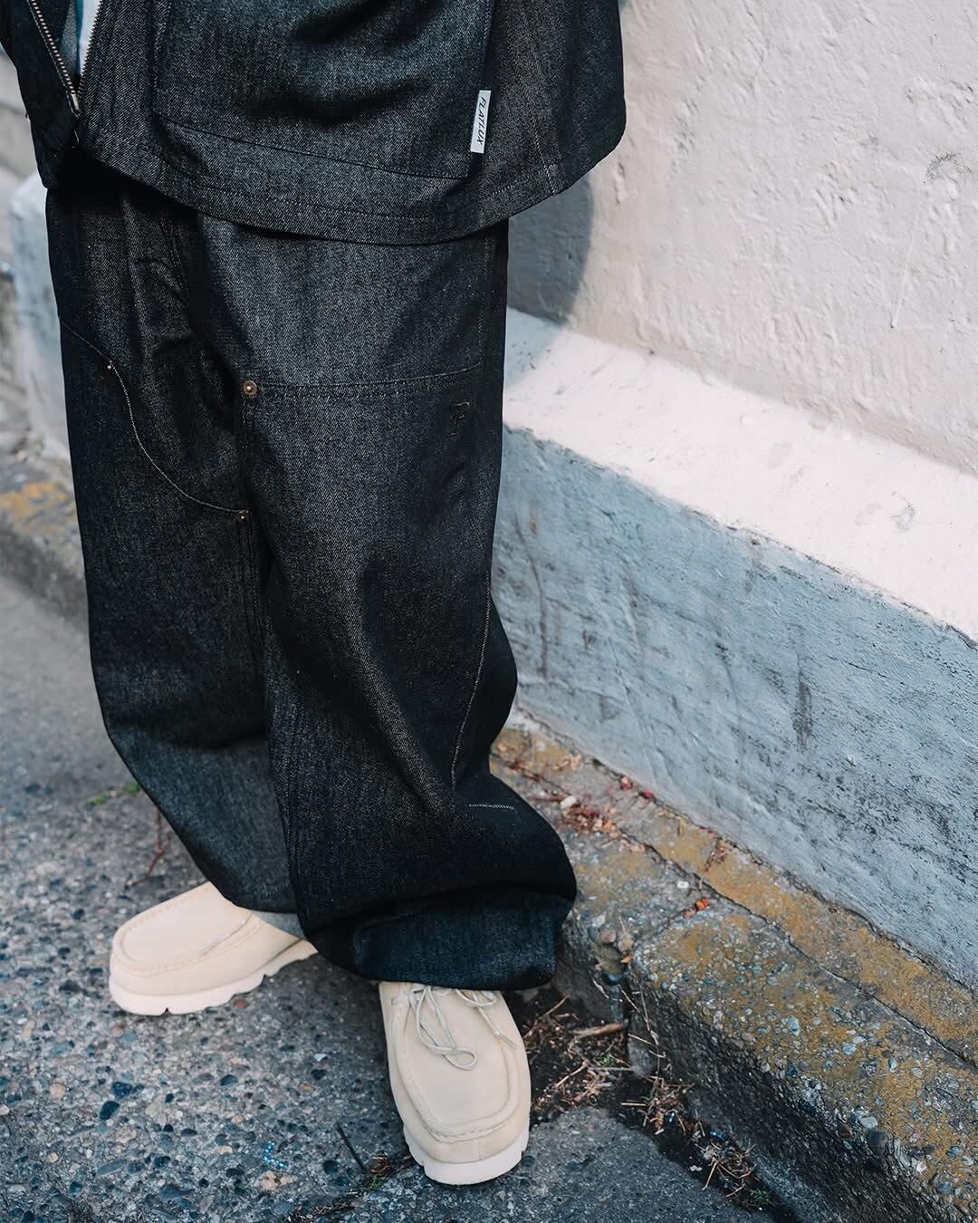 育てるデニム。洗いをかけていないリジットデニムなので経年変化が楽しめます。アタリ、シワ、クセ、時間をかけて自分を刻み込め。絶妙な太さのバギーシルエットで、膝はダブルニー。Vain Zip Shirt “denim”とセットアップで着用可能。