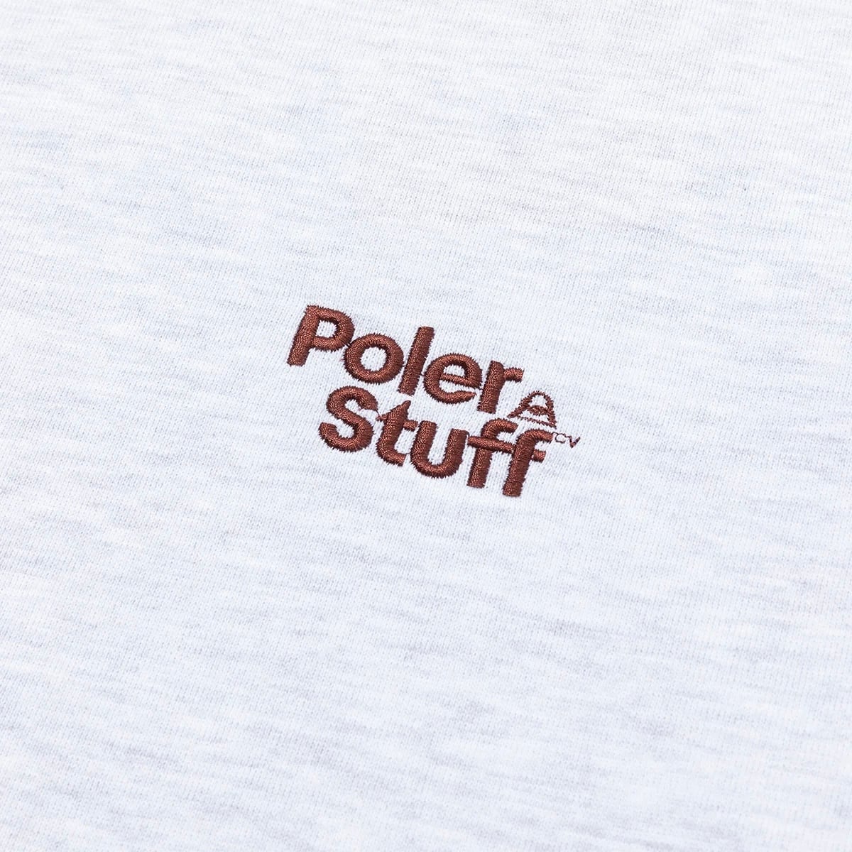 POLER STUFFの文字が左胸に刺繍で落とし込まれたクルースウェット。シンプルな仕上がりでどんなスタイリングにも自然に馴染んでくれる使い勝手の良いアイテム。生地はフレンチテリータイプで、デイリーユースでも使える上質な着心地な点も魅力のひとつです。