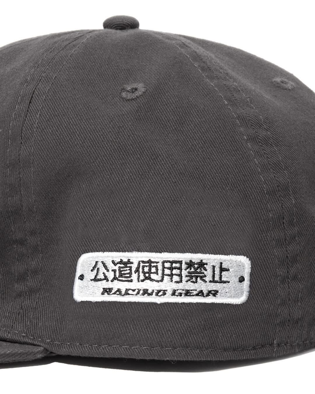 架空のレーシングチームのユニフォームキャップ、という設定。昔乗ってたKawasakiのバイクにつけていたレース用マフラーの” 公道使用禁止”のプレートに思いを馳せて。めちゃくちゃイイ音してたなぁ。このキャップは公道で被ってても怒られません。多分。