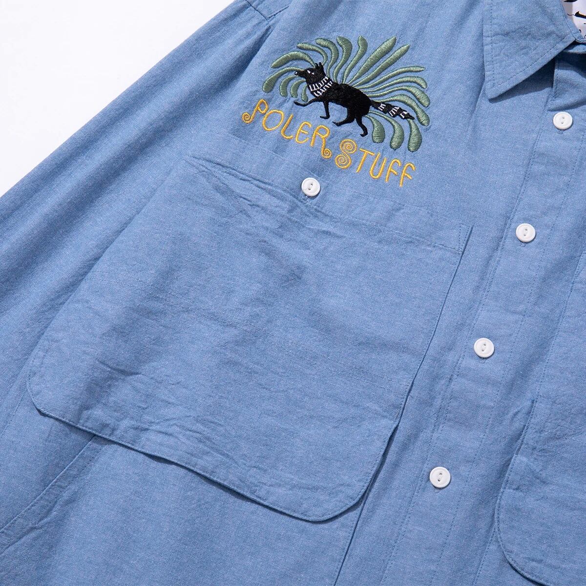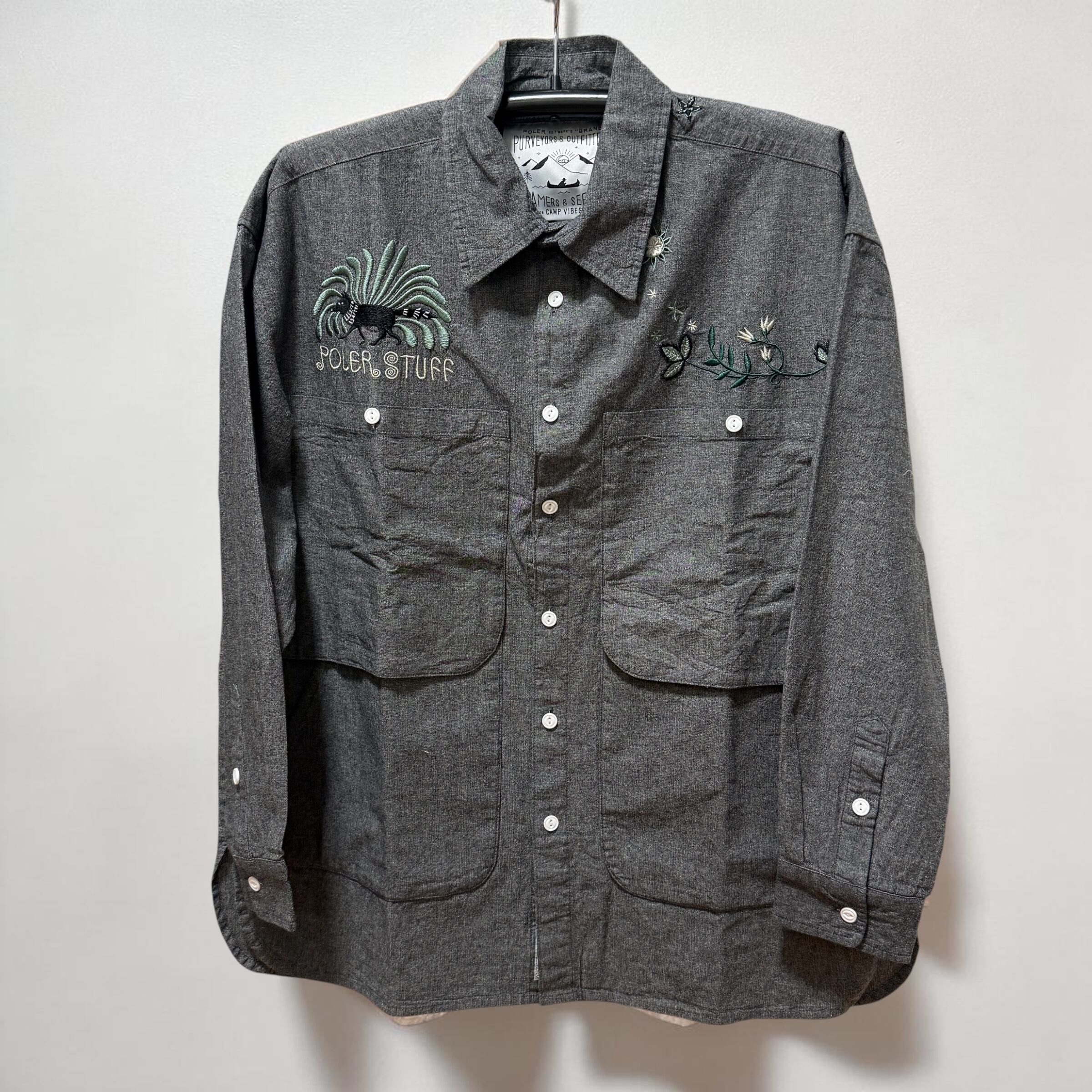 POLER EMB POCKET CHAMBRAY L/S SHIRTS 261mcv0013 ポーラー シャンブレーシャツ