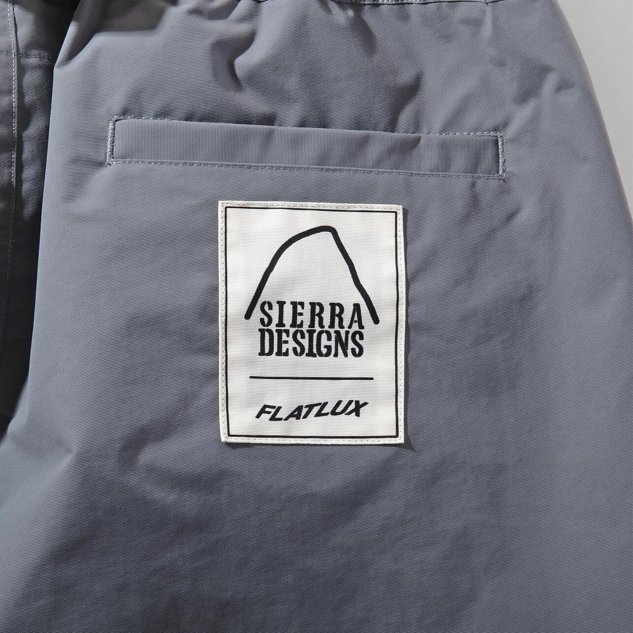 1965年に誕生したアメリカの老舗アウトドアブランド シエラデザインズとのコラボレーション。シエラデザインズといえば通称”ロクヨンクロス”と呼ばれる綿60% ナイロン40%の混紡生地を使ったマウンテンパーカ。アメリカで発表以降瞬く間に大ヒットとなり、現在のアウターシェルジャケットの原点にもなった。今回のコラボは敢えてロクヨンクロスではなく、リサイクルナイロンという提案。新しいシエラデザインズ、新しいフラットラックス。