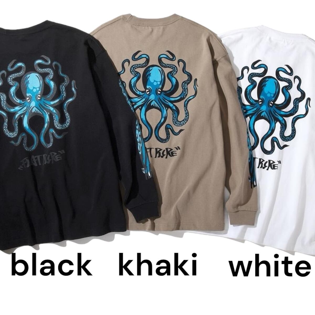 バイク、スノーボード、キャンプ、仲間とチル。自由奔放な生き方とそれが反映された絵が魅力の注目若手グラフィックアーティスト PUREの描き下ろし。彼の絵の特徴である生き物と青。PURE節全開、スタイル全開、アクセル全開です。超絶ヘビーウェイト & ゆったりシルエット。